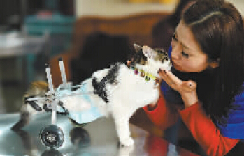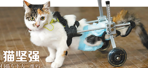 黑蝴蝶不是蝴蝶,而是一只8個月大的母貓咪。去年11月,它從10多米高空摔下,在寵物醫(yī)院先后接受了4次大手術(shù)才得以保住性命。如今,它的兩條后腳喪失了行走能力。因為面部和身體的毛是黑色,救它的人把它喚作黑蝴蝶。 意外發(fā)生后,不斷有好心人來幫助黑蝴蝶。上周,在重慶生活的美國人Alison(艾莉森)聽說了黑蝴蝶的故事,她和女兒也加入到拯救黑蝴蝶的行動中。 半年4次大手術(shù)生命力頑強 昨日上午11時許,重慶晚報記者在渝北區(qū)和美寵物醫(yī)院見到黑蝴蝶。由于它瘦小體弱,寵物醫(yī)院院長程宇特地把它放在辦公室,以便隨時照顧。 見有生人來,瘦小的黑蝴蝶一直把頭往被子里縮。程宇把它抱出來,撫摸它,幫它后肢套上滑輪,并用食物鼓勵它行走。黑蝴蝶有2公斤重,滑輪幾乎是它體重的三分之一。套上滑輪后,黑蝴蝶兩只前肢在不住顫抖,卻又努力地一步步往前挪。走幾步后,它停下來休息一會,又站起來,繼續(xù)往前走。 “它還在逐步恢復(fù),但每天都需要鍛煉前肢,讓前肢發(fā)達起來。”程宇說,去年11月19日,一名女士把一只小貓咪送到寵物醫(yī)院。對方告訴程宇,兩天前,在九龍坡區(qū)石橋鋪一家小區(qū),貓咪被人踩到后,從9樓掉到5樓。 “去年,我們先后給貓做了3次大手術(shù):脾臟切除、腎臟切除、膀胱肝臟修補?!背逃钫f,今年3月它又突然腮幫腫大。為保命,黑蝴蝶在3月8日又接受了舌下腺囊腫切除術(shù),目前健康狀況良好。 程宇說,前后4次手術(shù),加上去年摔傷造成的腰椎斷裂,兩只后腿徹底失去走路能力,它也因此不會用貓爪清理自己的糞便,所以每天都要使用尿不濕。 “黑蝴蝶從10多米高處摔下,應(yīng)該是左腰部和兩后肢落地,能活下來就已是萬幸,更不要說半年就接受4次大手術(shù)。它是我從事獸醫(yī)工作10多年來,治療過的生命力最頑強的小動物。”程宇說。 美國太太每天陪它康復(fù)訓(xùn)練 “那名女士為救黑蝴蝶前后花了1萬多元,還送來一個機械滑輪。”程宇說,她們希望能讓更多人來關(guān)愛這只堅強的貓咪。昨日,重慶晚報聯(lián)系上這名女士,“希望大家不只關(guān)注它,也能多關(guān)愛那些流浪貓狗?!彼辉敢馔嘎缎彰?/p> 程宇說,上周,她把黑蝴蝶的故事講給經(jīng)常來寵物醫(yī)院的美國客人艾莉森聽?!鞍蛏瓗缀趺刻於紩砼惆楹诤隹祻?fù)訓(xùn)練?!背逃钫f:“艾莉森自己腰椎也有問題,每天都會陪黑蝴蝶練習(xí)用機械滑輪走路?!?/p> 昨下午,艾莉森對重慶晚報記者說,自己是全職太太,丈夫是汽車工程師,2年前她隨丈夫來重慶生活。8歲女兒Claire(克萊爾)在重慶一所國際小學(xué)讀二年級。如今,艾莉森家里還養(yǎng)著4只流浪貓狗。 當(dāng)艾莉森知道黑蝴蝶遭遇后,她當(dāng)即在自己的Facebook(臉書)上發(fā)了求助微信,希望在重慶的美國朋友可以領(lǐng)養(yǎng)黑蝴蝶。 美國小女孩想給貓咪找個家 上周末,艾莉森把女兒及其兩個同學(xué)也帶到寵物醫(yī)院。3個美國女孩看到黑蝴蝶后,主動向程宇借了處方簽,為黑蝴蝶開起“處方”。重慶晚報記者看到,克萊爾在處方簽上寫著:“黑蝴蝶從17樓摔到了5樓,現(xiàn)在它在坐輪椅,請收留它?!背逃罱忉?,克萊爾應(yīng)該是聽錯了黑蝴蝶摔倒的樓層高,所以寫錯了情況。類似的求助宣傳語在寵物醫(yī)院仍能找到。 艾莉森說,女兒告訴她,黑蝴蝶的機械滑輪太重了,長度似乎不太適合它,需要改進?!拔覍ξ?歲女兒感到非常自豪?!卑蛏f,在家里,克萊爾會主動照顧4只貓狗,協(xié)助自己幫它們洗澡、喂食、遛狗等。救助這些小動物,克萊爾會比同齡人多一份責(zé)任心與耐心,對陌生人也更友善和開朗。 “我要盡最大努力去幫助黑蝴蝶?!笨巳R爾說,她會發(fā)動班上同學(xué)來關(guān)愛黑蝴蝶,讓黑蝴蝶盡快有一個屬于自己的家。重慶晚報首席記者 郝瑤 冉文 攝影報道